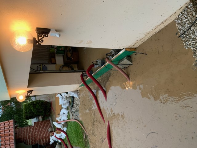Doch damit war für die Remser Kräfte noch kein Feierabend. Über Funk hatte man von der Nachbarfeuerwehr Oberwiera erfahren, dass deren Einsatzgebiet auch schwer betroffen war und Häuser überflutet wurden. Somit entschloss man sich zur schnellen Nachbarschaftshilfe und fuhr mit beiden Einsatzfahrzeugen in den Ortsteil Neukirchen wo in einem direkt neben einem Bach liegenden Wohnhaus das Untergeschoss bereits circa 30cm unter Wasser stand. Mittels mehreren Pumpen konnte man den Bereich schließlich mit vereinten Kräften vom Wasser befreien und gegen 22 Uhr auch diesen Einsatz beenden.